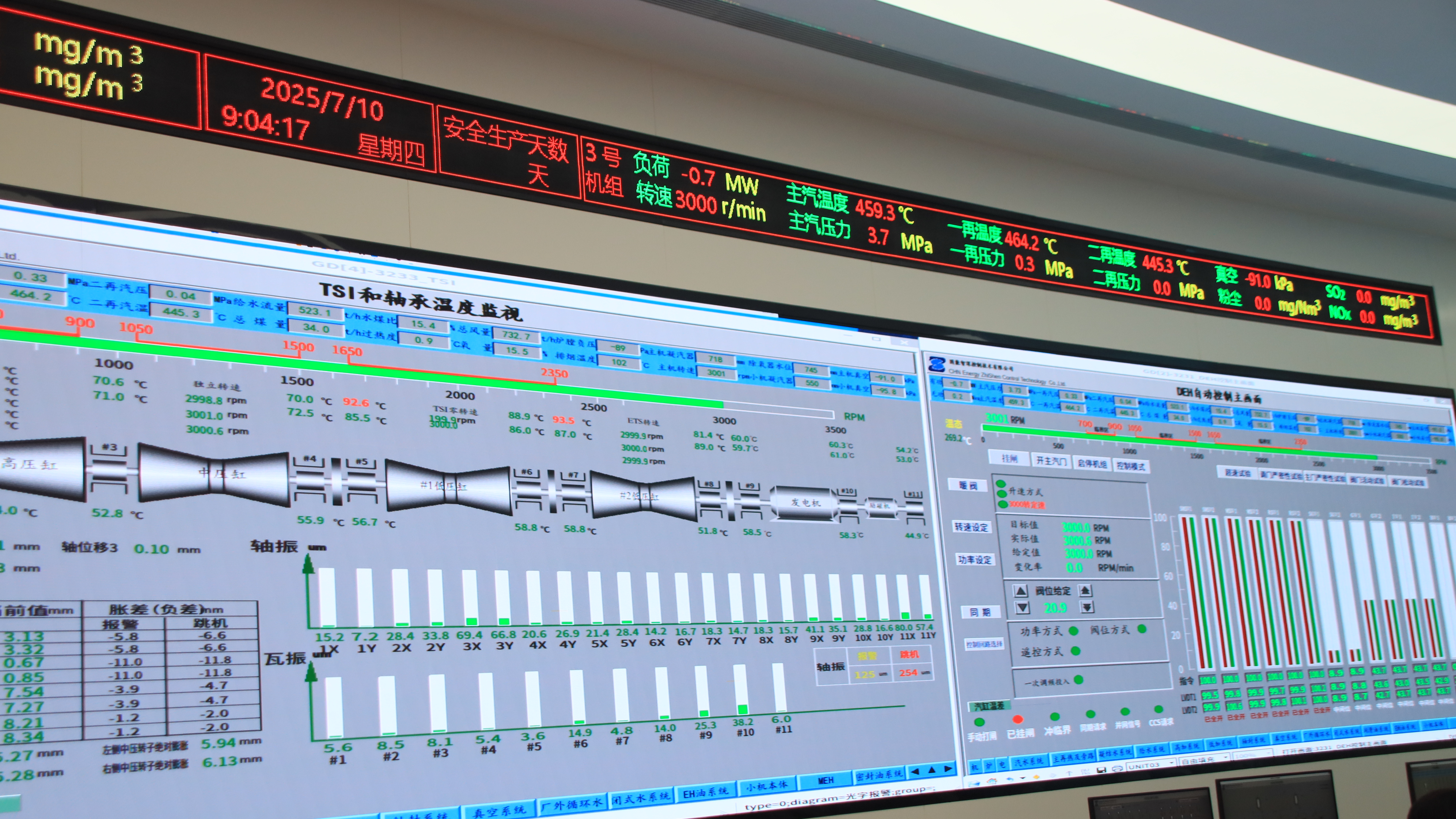 為確保汽輪機(jī)沖轉(zhuǎn)順利完成,池州二期項(xiàng)目部精心組織,統(tǒng)一策劃,提前制定沖轉(zhuǎn)方案和安全保障措施,嚴(yán)格按照沖轉(zhuǎn)前各項(xiàng)標(biāo)準(zhǔn)要求對各系統(tǒng)進(jìn)行嚴(yán)密的檢測和確認(rèn),確保試運(yùn)設(shè)備和管道系統(tǒng)的安全性與完整性。在汽輪機(jī)沖轉(zhuǎn)和階段升速期間,汽輪機(jī)軸瓦振動、油溫、汽缸膨脹等技術(shù)指標(biāo)均達(dá)到優(yōu)良標(biāo)準(zhǔn),機(jī)組運(yùn)行平穩(wěn),為下一步并網(wǎng)發(fā)電奠定了堅(jiān)實(shí)基礎(chǔ)。