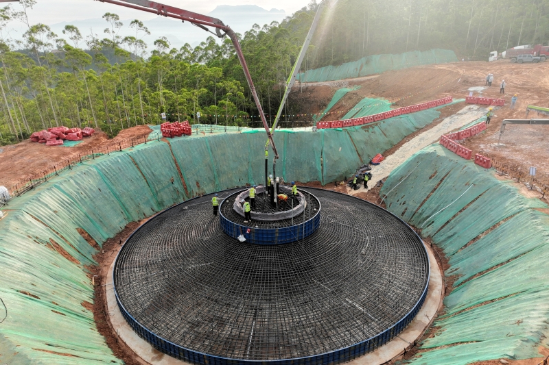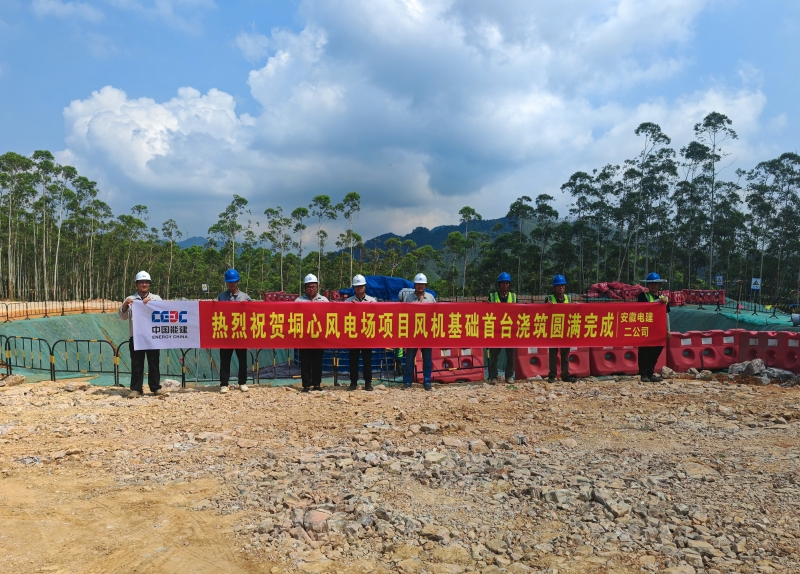 NEWS7月5日,公司承建的垌心100兆瓦風(fēng)電場項(xiàng)目首臺風(fēng)機(jī)基礎(chǔ)混凝土澆筑完成。